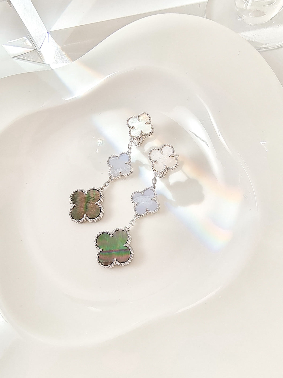 [Clover Jewelry]CLOVER 3 MOTIFS CHALCEDONY DARK MOP SILVER EARRINGS